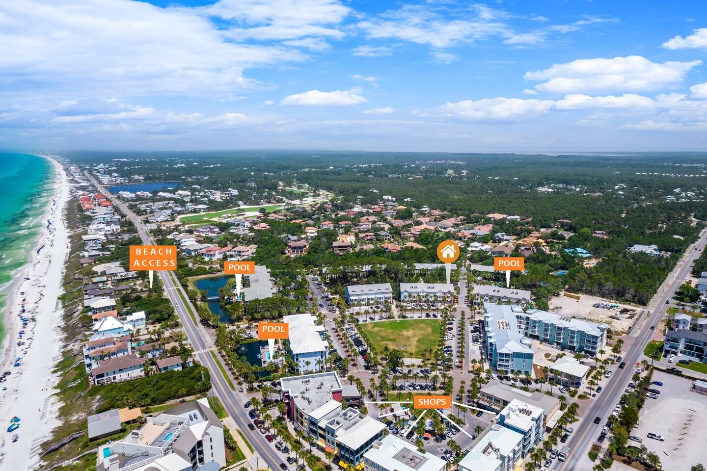 Experience true 30A beach living in our coastal townhome, just 400 steps from private beach access! This family-friendly retreat comfortably sleeps 8 and features 3 king beds, a bunk room, and access to 3 community pools. Enjoy an open living space, fast WiFi for remote work, and a private patio. Perfect for families or groups seeking a relaxing Gulf getaway.